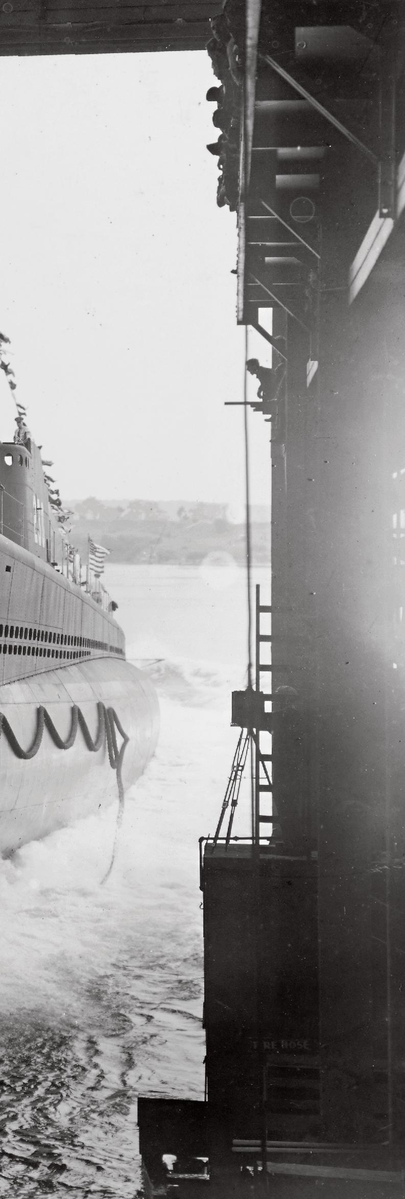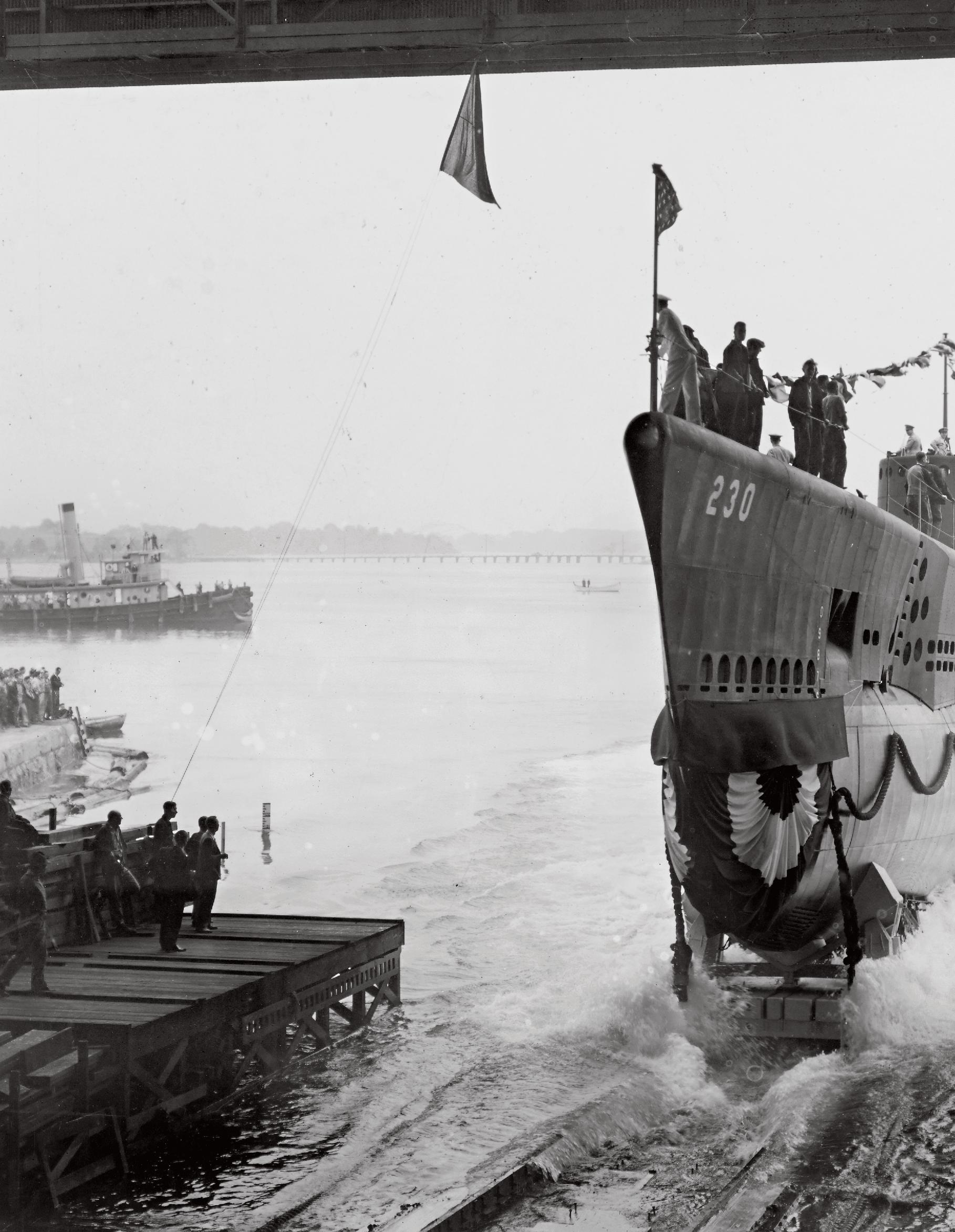 Spuštění ponorky Finback na vodu v Portsmouth Navy Yardu v New Hampshiru, jež se odehrálo 25. srpna 1941