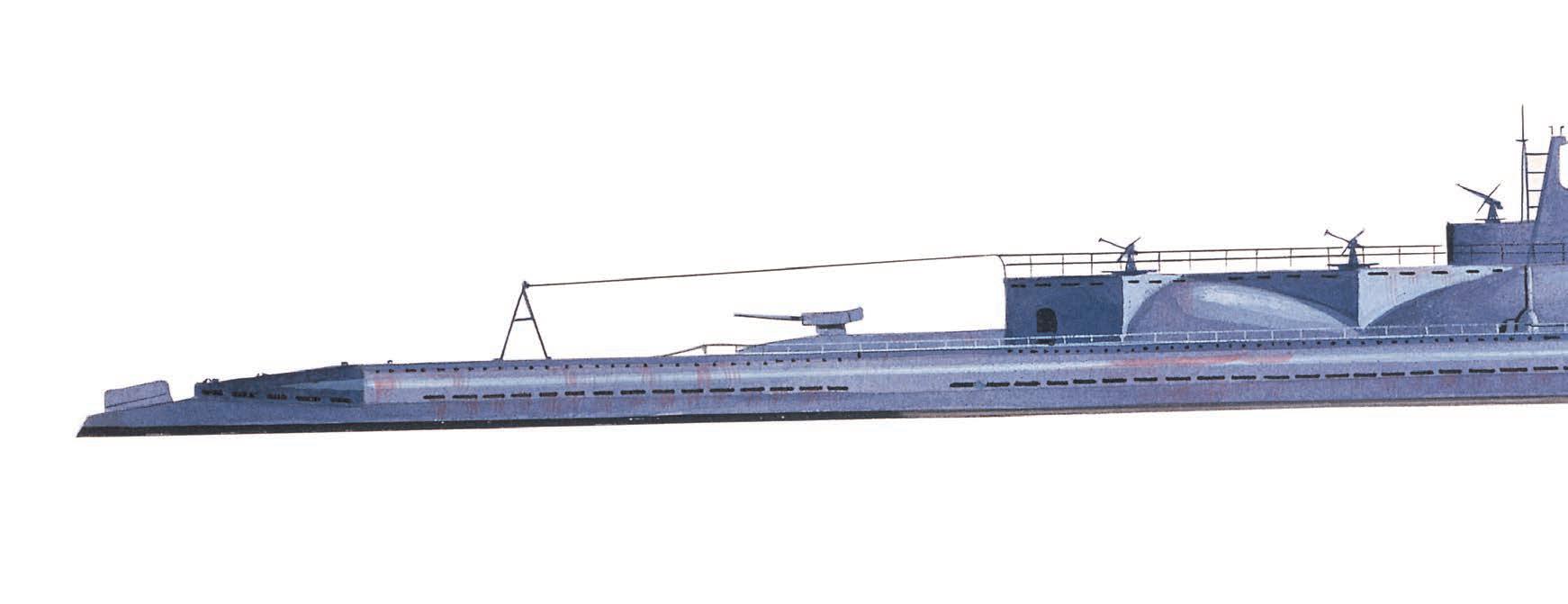 Bokorys a půdorys inovativní třídy ponorek. V roce 1945 vyvolala u amerických pozorovatelů úžas, ale japonskému válečnému úsilí by více prospělo větší množství běžných člunů