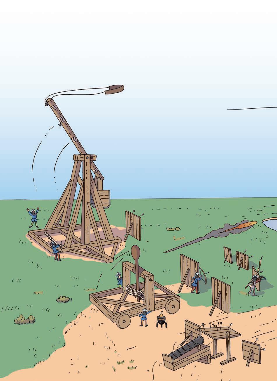 Katapult: Tímto strojem se vystřelovaly nejrůznější projektily, kameny i hořící předměty, aby způsobily požáry. Metala se dokonce i mrtvá zvířata, která pak šířila nemoci. FUJ.