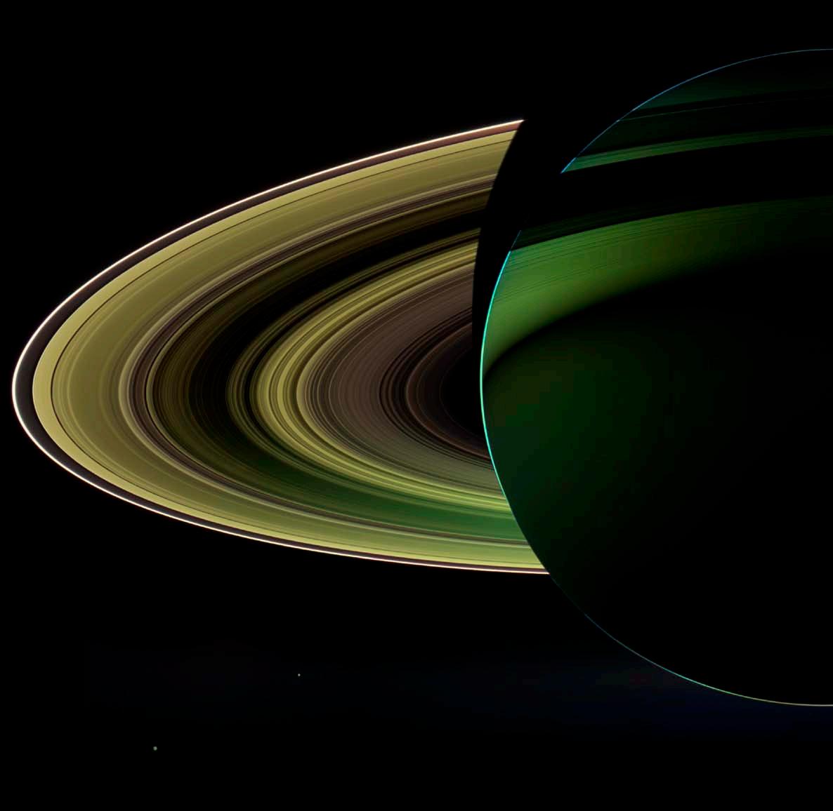částic, převážně ledových zrn pokrytých prachem. Původ těchto zajímavých útvarů s nejvyšší pravděpodobností souvisí s vývojem soustavy přirozených satelitů. Mohlo tak dojít například ke slapovému roztrhání mě-