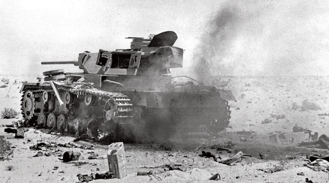 PzKpfw III zničený Pouštním letectvem během bitvy o Alam Halfa.