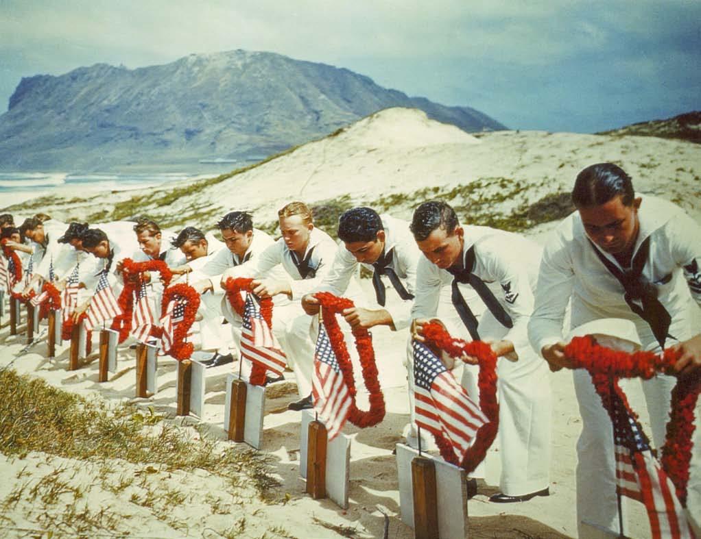 Uctění památky padlých. V Pearl Harboru zemřelo na americké straně 2 343 příslušníků ozbrojených sil, 960 bylo evidováno jako pohřešovaných a 1 272 utrpělo zranění.