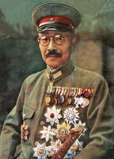 Oficiální portrét japonského premiéra Hidekiho Tódžó zveřejněný 2. prosince 1942, během prvního výročí začátku války, za jejíž rozpoutání nesl velkou odpovědnost.