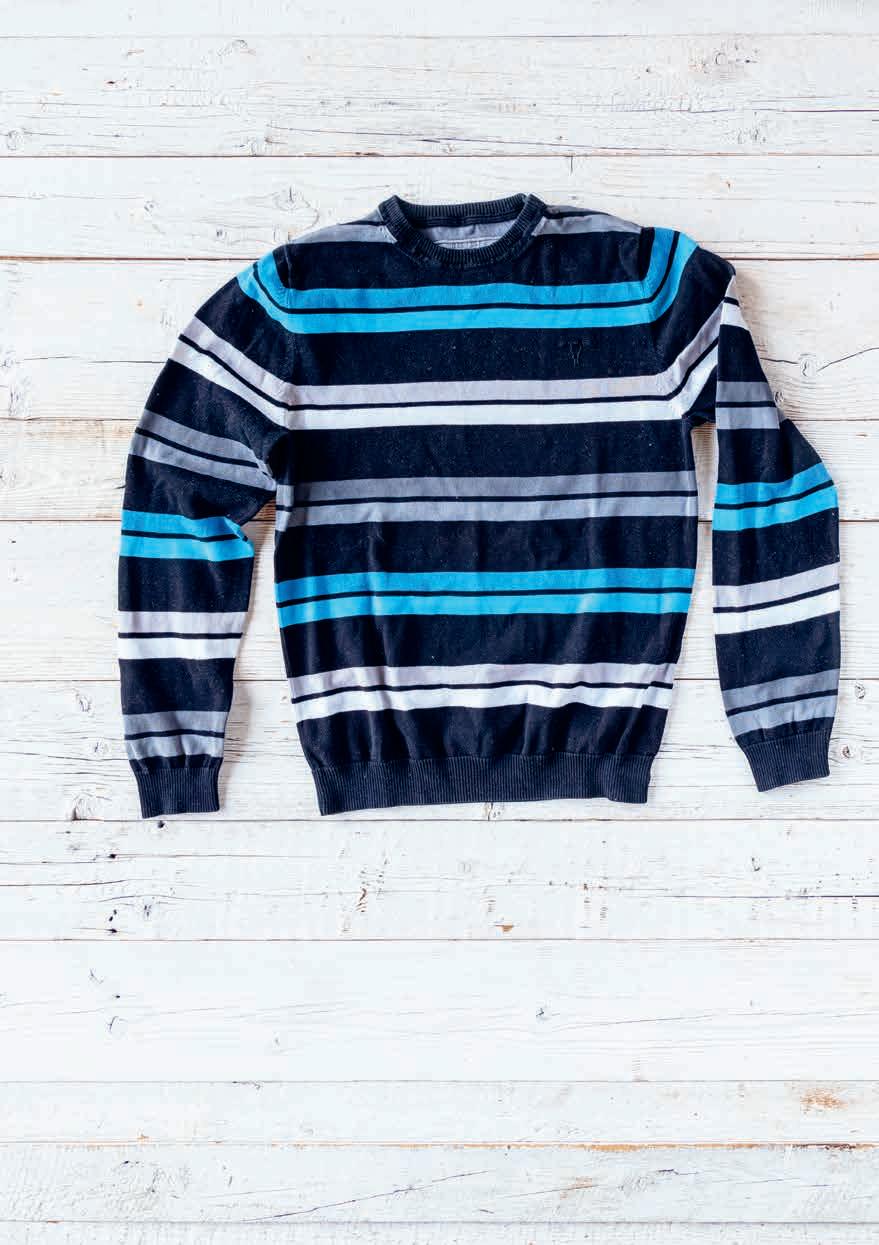 Pro začátek proto doporučujeme vyzkoušet si nejprve malé projekty, jako je výroba kapesníčků ze starých triček (str. 72), abyste si šití a začišťování takových látek nejprve vyzkoušeli. S trochou cviku nebude již nic stát v cestě vlastnímu nákrčníku (str. 124) nebo polštářku z oblíbeného trička (str. 118).