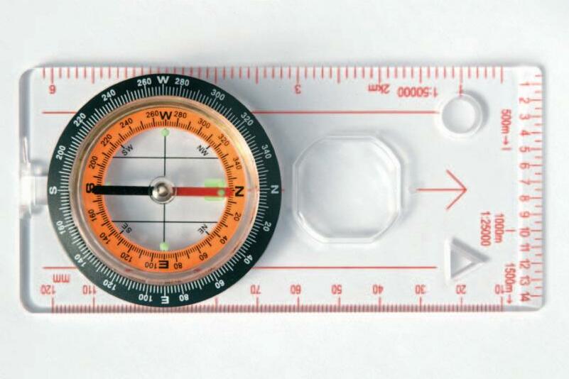 Přesnost v použití kompasu či buzoly (především pokud máte i mapu) podstatně usnadní a zrychlí vaše putování. Kompasy seženete ve všech možných podobách a velikostech, takže stačí vybrat takový, který vám bude nejlépe vyhovovat. Postačí jednodušší model, ovšem ujistěte se, že má luminiscenční prvky, aby se dal použít i v noci. Jeden konec hlavní střelky bývá obvykle nabarvený červeně – ukazuje vždy k magnetickému severu a pro určování směru je nejdůležitější. Když s kompasem začnete pracovat, nezapomínejte, že existuje několik vlivů, které mohou střelku vychýlit a narušit orientaci. Především jde o: