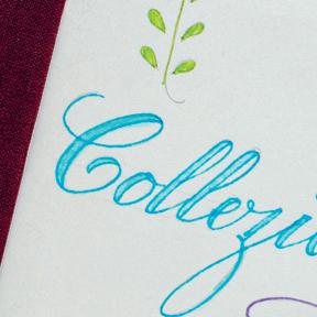 4. Pokračujte ostatními písmeny a smyčku písmene „y“ ozdobte lístečky a obtáhněte jeho obrys gelovým perem.