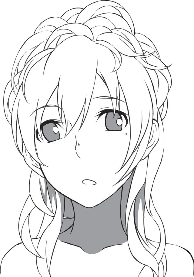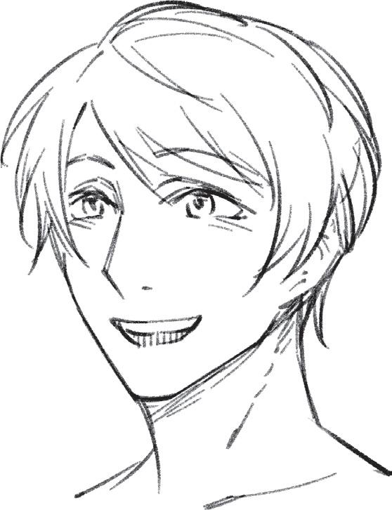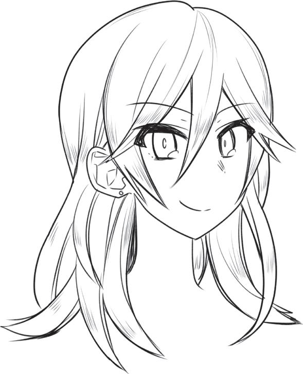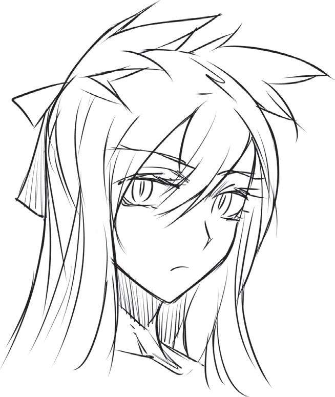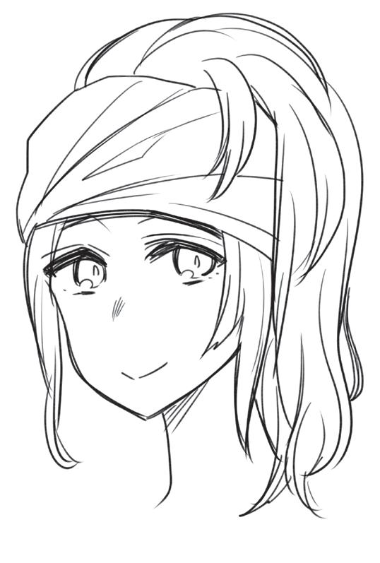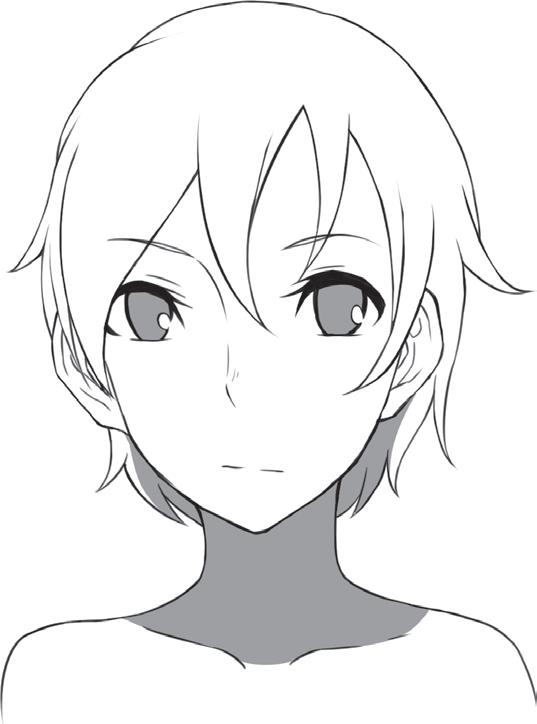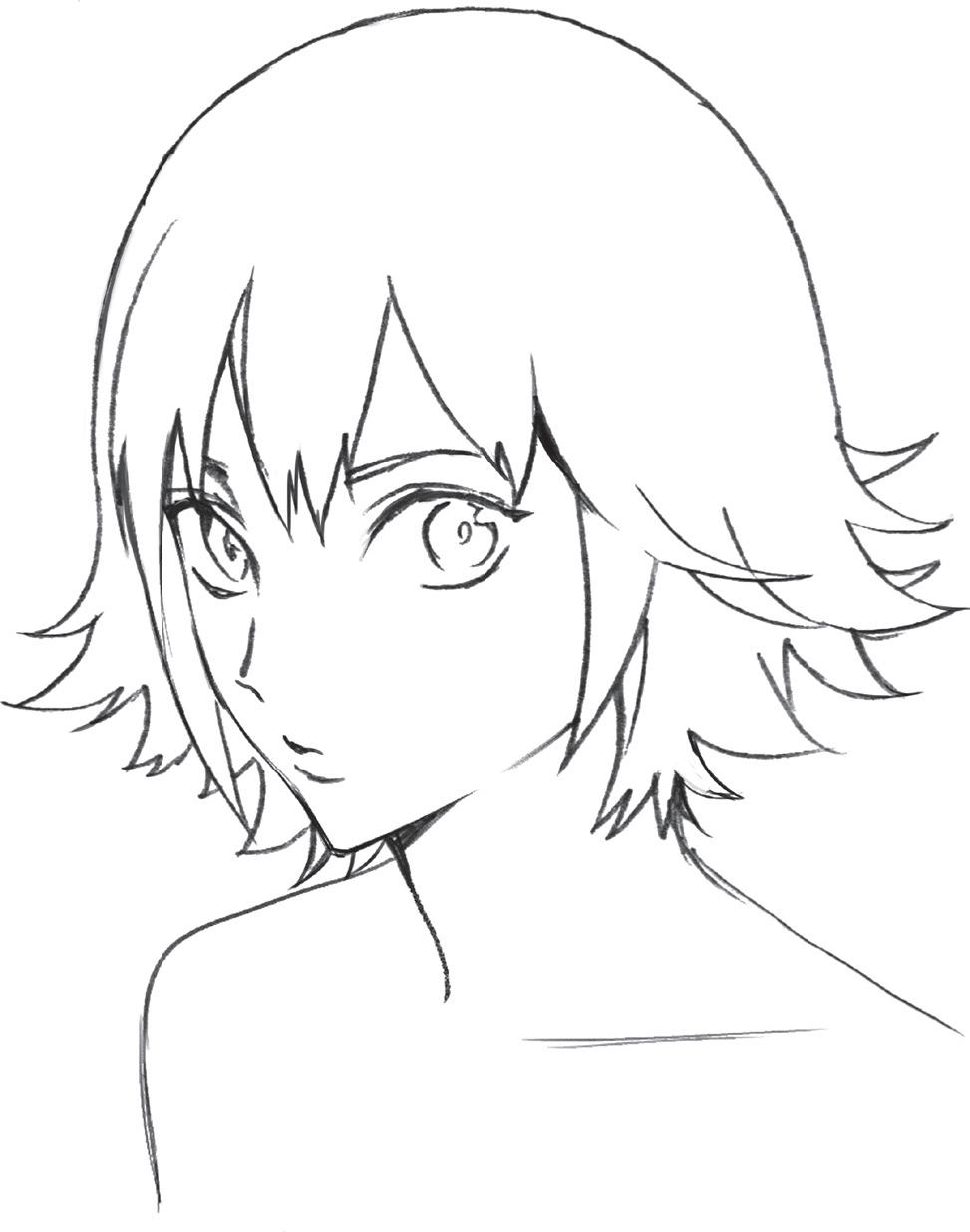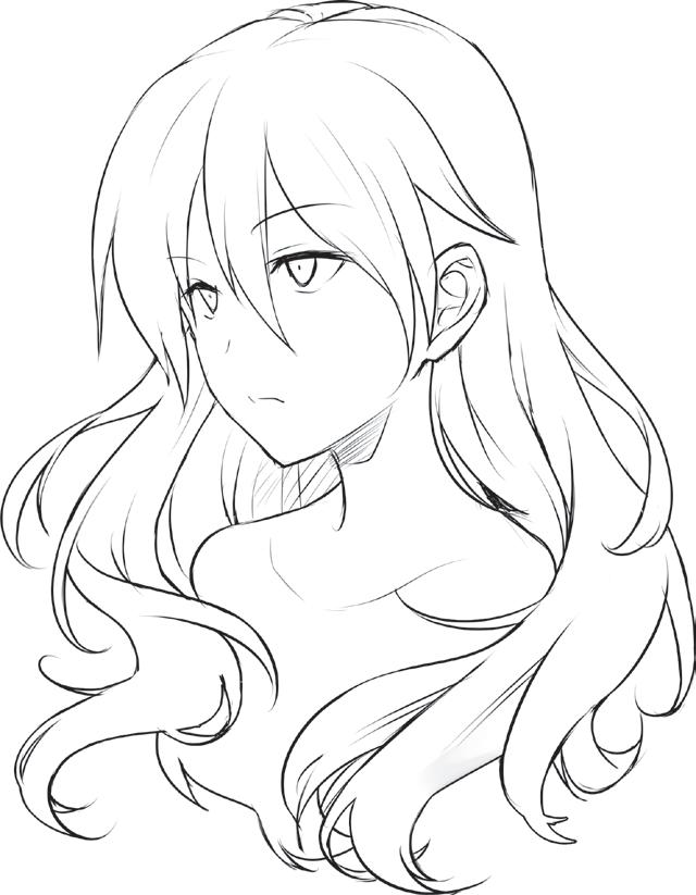 Ztvárněním zakroucených konečků vlasů vyjádříte přátelskou a společenskou povahu postavy. Blond odstín můžete naznačit přidáním několika jemných čar do jednotlivých pramenů.