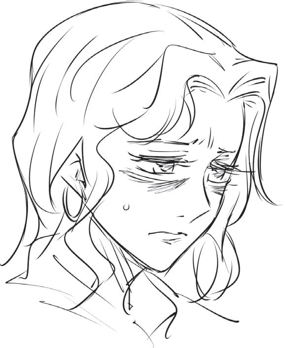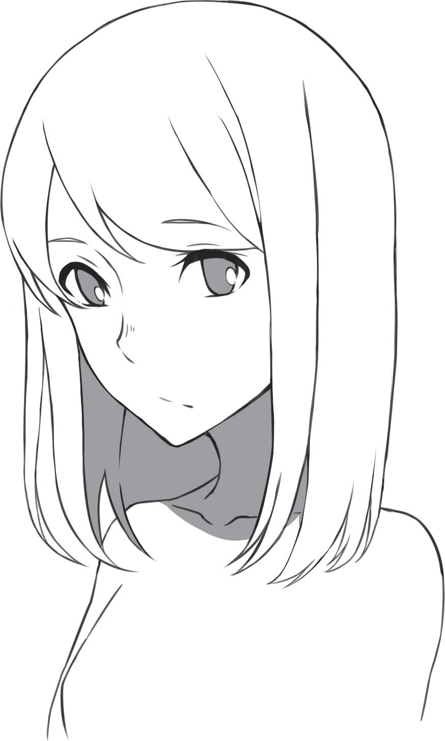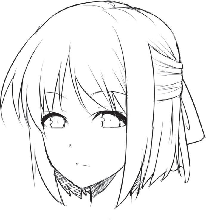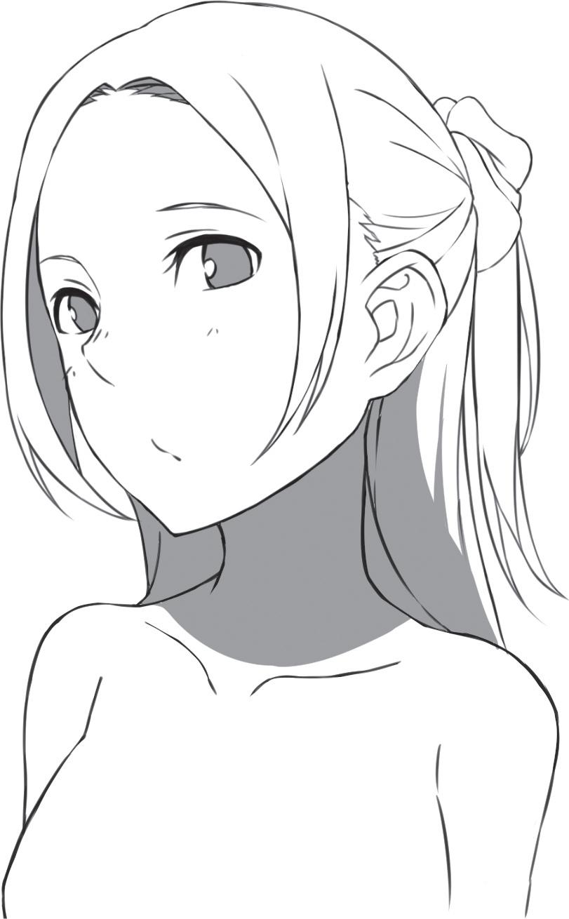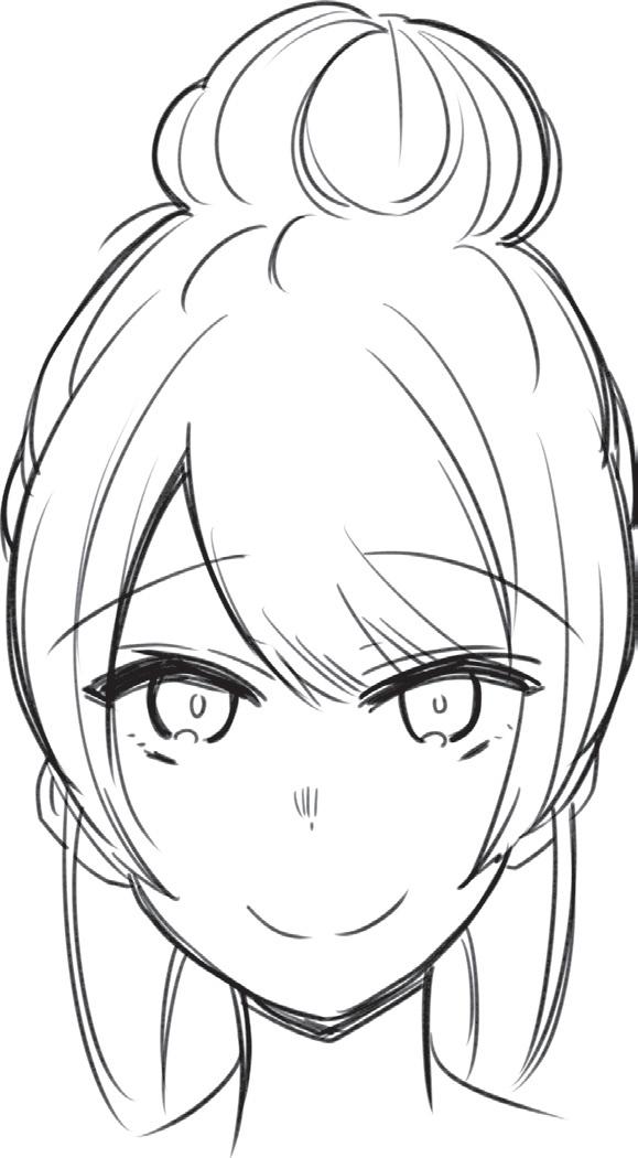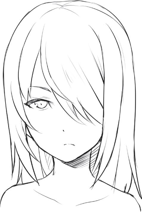 Ztvárněním zakroucených konečků vlasů vyjádříte přátelskou a společenskou povahu postavy. Blond odstín můžete naznačit přidáním několika jemných čar do jednotlivých pramenů.