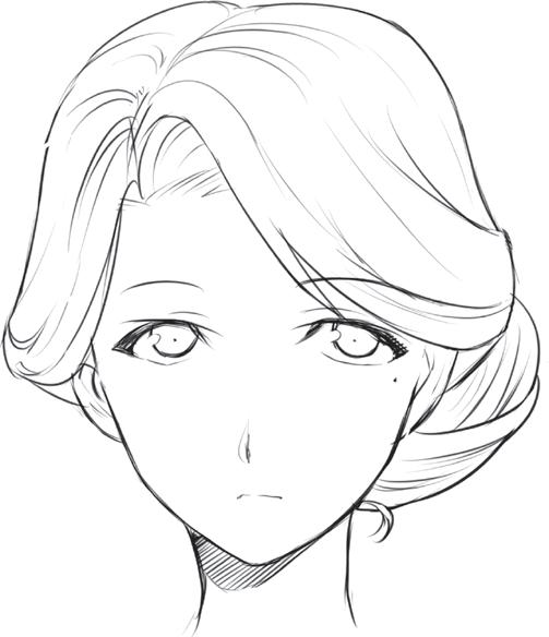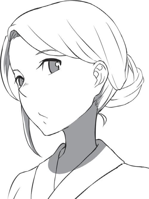 postavě, která má působit upraveně a seriózně, nakreslete vlasy vyčesané do vysokého drdolu.