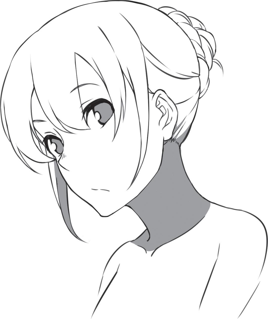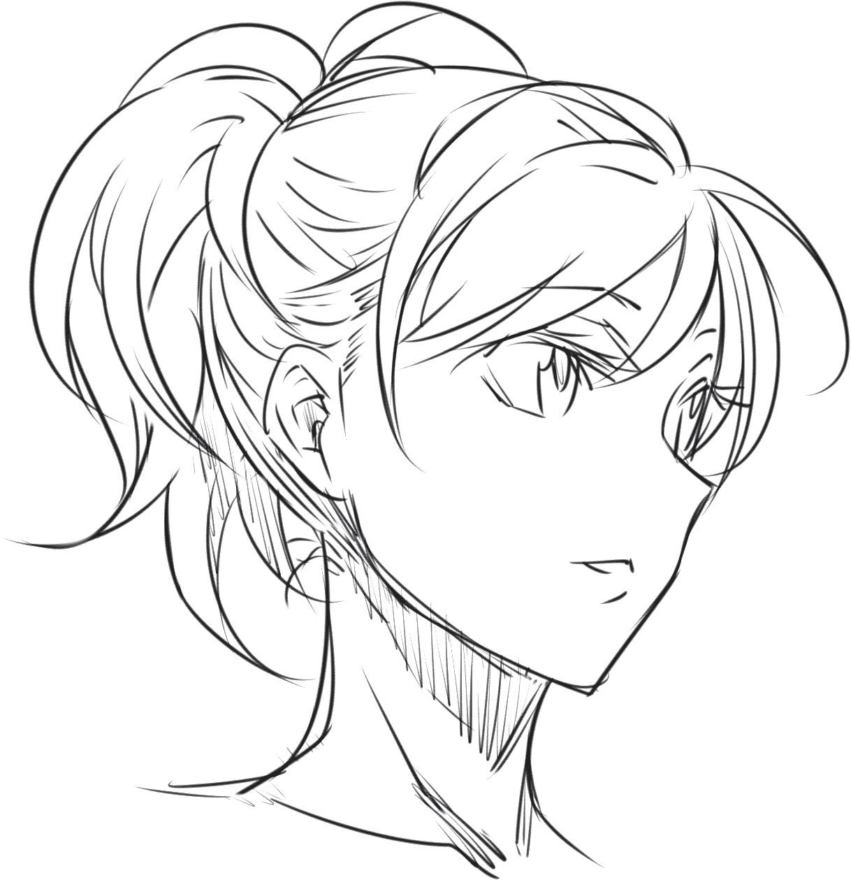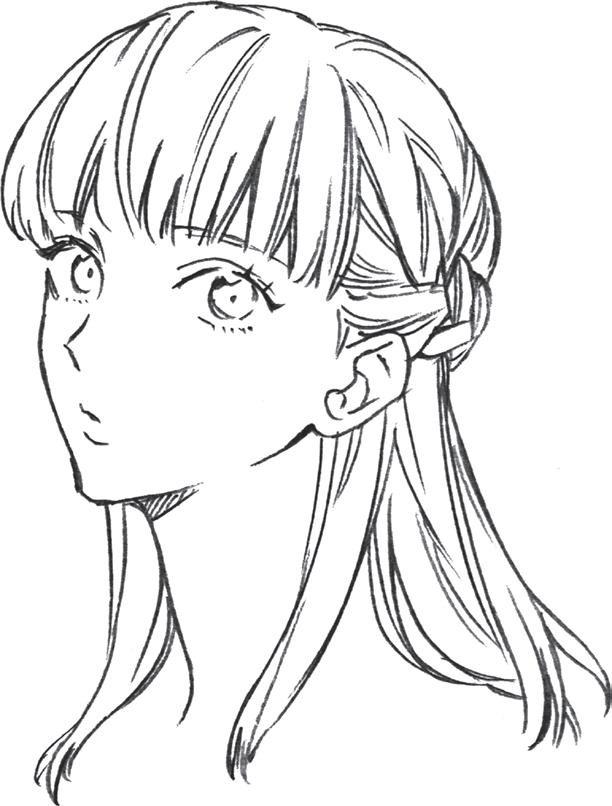 při kreslení culíku naznačte vzadu jednotlivé prameny.