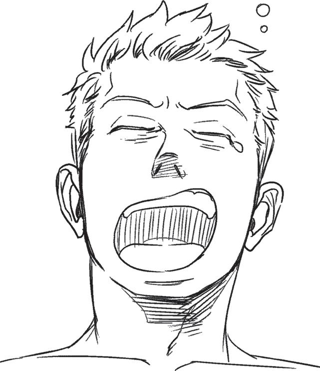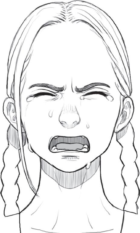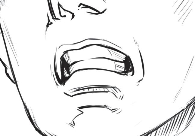 Otevřená pusa naznačuje křik. Lícní svaly jsou ve vzteku sevřené a ústa jsou doširoka otevřená, většinou spíš horizontálně než vertikálně. Jsou vidět horní i spodní zuby.