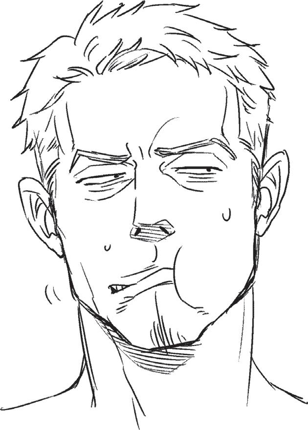 Stáhne koutky úst do zamračeného výrazu.