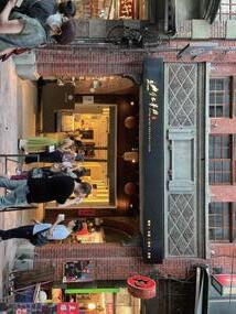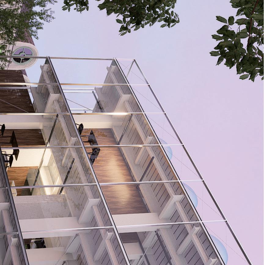 Obstacles on the street have caused the road to narrow. The interface of the building is shifting due to moving objects on the street. The original elongated orientation of the building restricts the walking path.