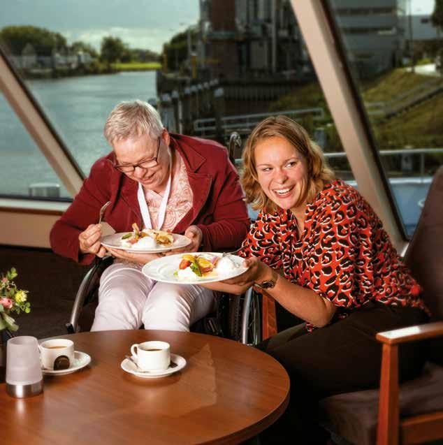 “De glimlach op het gezicht van een vakantiegast.” Daarvoor gaat verpleegkundige Bernadet Hendriksen uit Dodewaart sinds 2016 regelmatig als vrijwilliger met de Zonnebloem op vakantie. Die glimlach kreeg ze ook te zien toen ze tijdens haar laatste vaarreis met MPS de Zonnebloem samen met scheepskok Ronald Oosterveld apfelstrudel mocht bakken voor deelnemer Sandra Oskam uit Schijndel. “Sandra kan nauwelijks praten, maar ik kon aan haar twinkelende ogen zien dat ze genoot van het samenzijn en van het samen bakken in de kombuis. Met als toetje een heerlijke apfelstrudel met ijs en vanillesaus.”