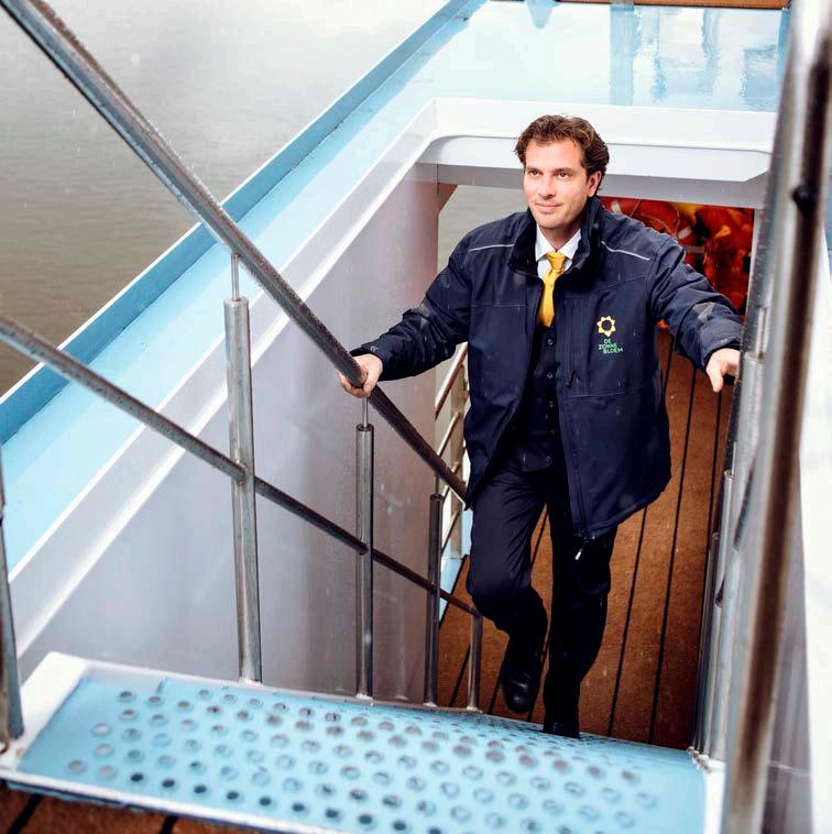 “Vijf jaar lang werkte ik op een cruiseschip van de Hol land-Amerika Lijn. In 2005 zette ik daar een punt achter en boekte ik een enkeltje Indonesië, waar mijn dochter woont. Daar probeerde ik een cateringbedrijf van de grond te krijgen, maar dat project moest ik stopzetten. Toen ik terugvloog naar Nederland had ik geen huis en geen werk meer. Ik wilde eigenlijk weer op zee gaan varen, tot mijn jong ste broer de vacature van de Zonnebloem onder mijn neus schoof. Hij is ook restaurant manager en wist dat ik zocht naar een combinatie van door deweeks op het water en in de weekenden aan land werken. Ik besloot te solliciteren en twee maanden later stapte ik voor het eerst aan boord van MPS de Zonnebloem.”