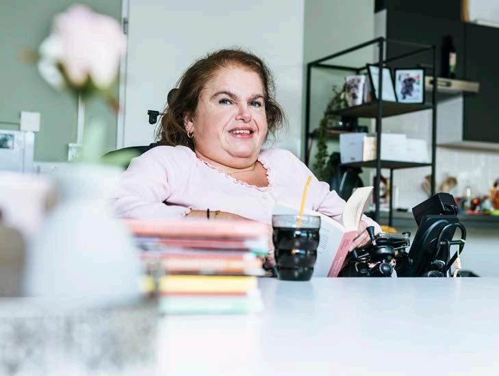 Ze heeft 1.001 hobby’s, doet veel vrijwilli gerswerk voor het Prinses Beatrix Spier fonds, zit in het bestuur van Spierziekten Nederland regio Brabant, start binnenkort haar eigen bedrijf en voegde ruim twee jaar geleden ook ‘mystery guest’ toe aan haar cv. Indrukwekkend! “Zolang ik de energie heb, krijg ik dat allemaal rond in mijn planning. Voor mij is toegankelijk heid ontzettend belangrijk. En eerlijk, het avontuurlijke sprak mij ook aan. Ik ga graag naar musea en theaters. Het leek me geweldig om die ‘undercover’ te tes ten. Samen met mijn verzorgster bezocht ik al heel wat prachtige locaties met die dubbele agenda. De rapportages maken we samen. Ik geef mijn mening, zij schrijft alles op tijdens een horecastop.”