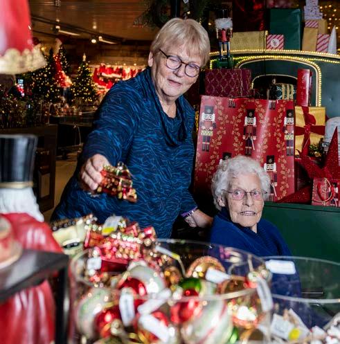 Dertig jaar deelnemer Deelnemers Ali van Don kelaar en Marga Letema genieten met volle teugen van alle glitter op de kerst show. Zelfs na drie rondes raken ze niet uitgekeken. “Mooie plek, toch?”, glun dert Marga. Aangeboren hersenletsel zorgt ervoor dat ze al haar hele leven een lichamelijke beperking heeft en uiteindelijk in een rolstoel belandde. “Mijn moeder was vijftig jaar do nateur van de Zonnebloem, zo kwam ik ermee in aanraking. Ik ben al dertig jaar deelnemer. Naast de activiteiten die we met de afdeling Leusden onderne men, ga ik vanaf 2010 ook