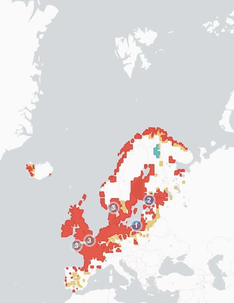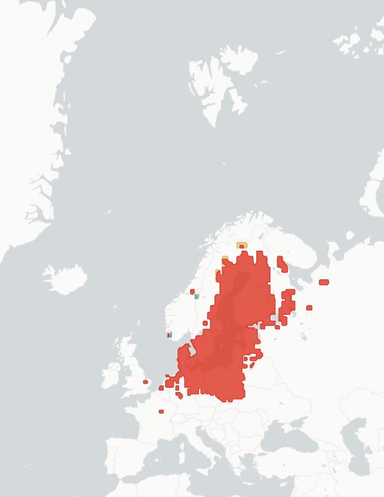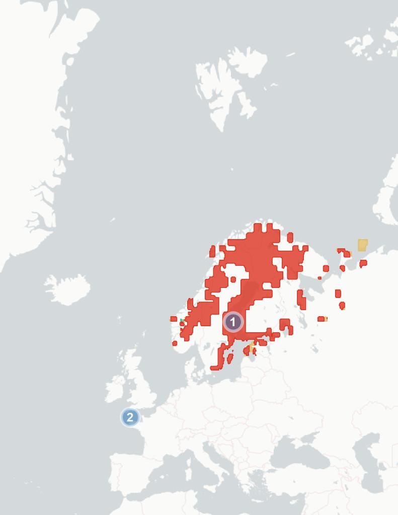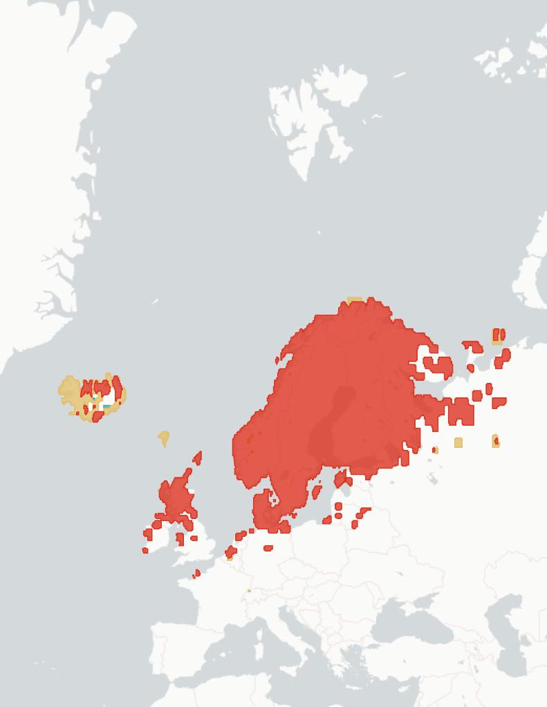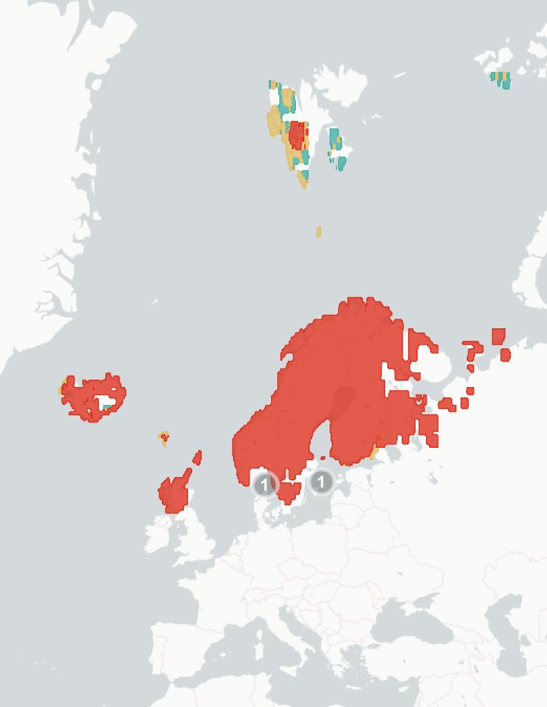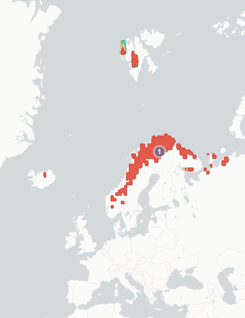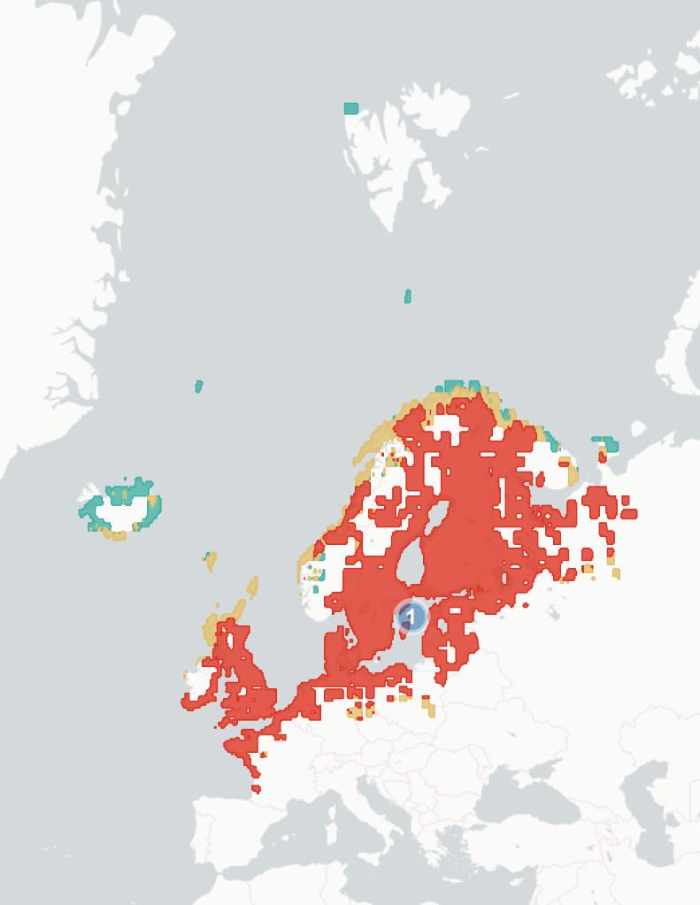 ◦Section1.1.2Potentialchangesinbreedinghabitatsuitability. Wehere aimtopredicthowmuchofthespecies’currentbreedingrangewillbe significantlylesssuitablein2070-2100,baseduponchangestothemarineand terrestrialenvironment.Wealsoestimatewhatproportionislikelytoremain suitable,andwhetherpartsofspecies’currentrangeswillbecomemore suitable.Theunderlyingspeciesdistributionmodel(SDM)considerspredicted changesintemperature,precipitation,salinity,distancefromtheseaand marinechlorophyllconcentration,aswellasseveralspecies-specificvariables whicharedetailedintheappendices.Aftercomparingestimatedhabitat suitabilitybetween2020and2070-2100,wesplitthecoastalregionofNorthWestEuropeintooneofthefourfollowingcategories:1)Habitatiscurrently suitableforagivenspeciesbutwilllikelybecomesignificantlylesssointhe future(markedinredonthemap),2)Habitatiscurrentlysuitableandwilllikely remainstableinthefuture(markedorangeonthemap),3)Habitatiscurrently suitablebutwillbecomesignificantlymoresointhefuture(markedgreenon themap)and4)Habitatisnotcurrentlysuitableandwillnotbeinthefuture (notmarkedonthemap).Thereisconsiderableuncertaintyaroundthese estimates,andassuchtheyshouldbeunderstoodasanindicatorofriskrather thanafirmprediction.Notethatmapsareaggregatedandenlargedtomake smallislandsmorevisibleandarenotexactrepresentationsofspeciesranges.