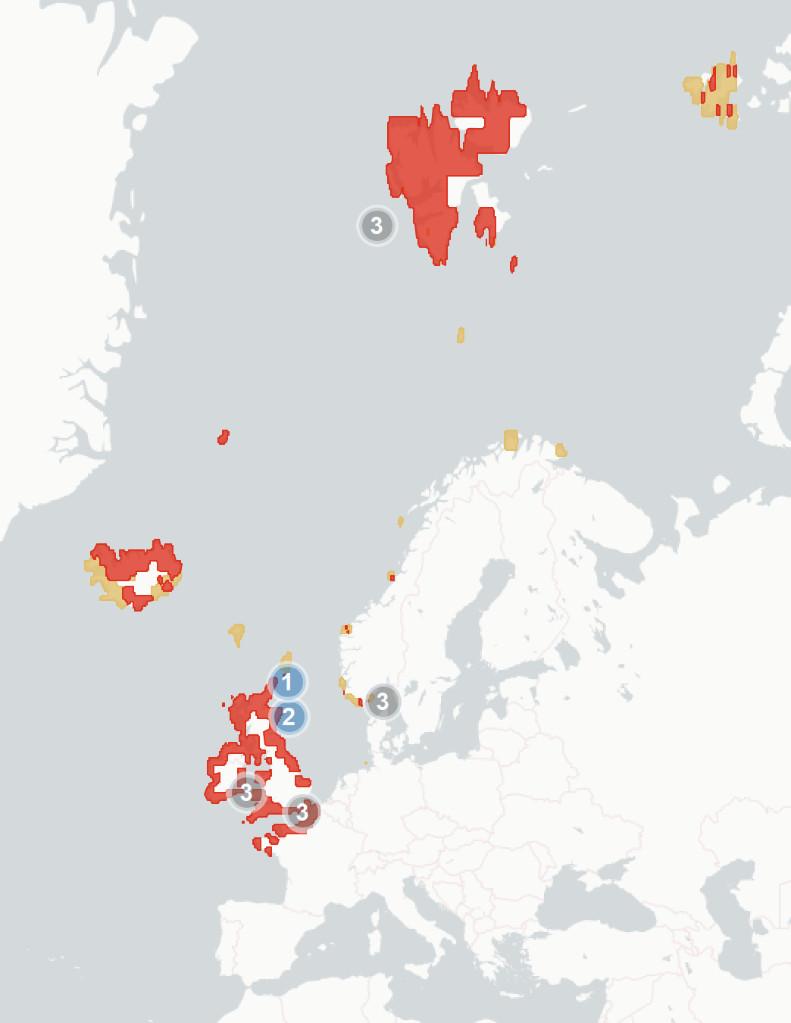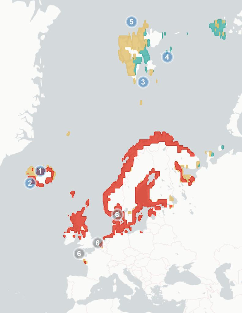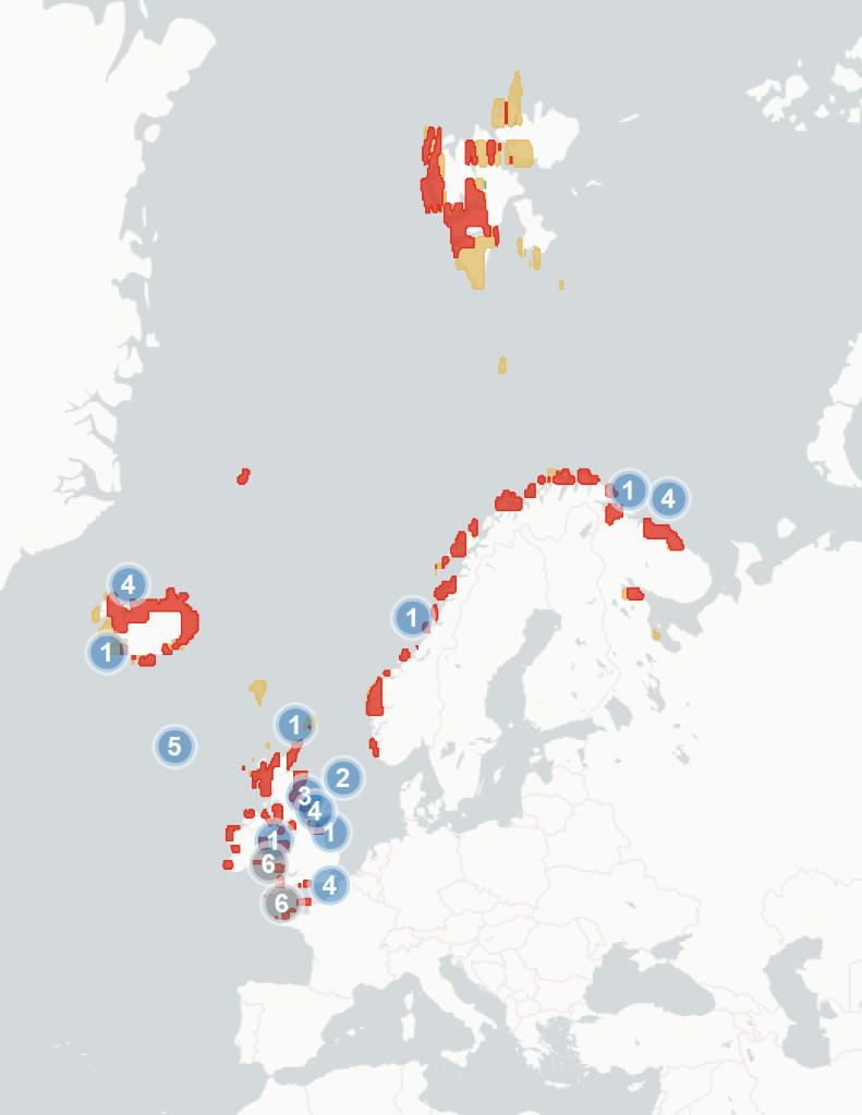 hassofarbeenobservedintheNorth-EastAtlantic.Animpactisdefinedasa changeinbreedingsuccess,abundance,survival,condition,behaviouror geneticsthatcanbeatleastpartiallyattributedtoclimatechange.This includes:a)long-termtrendsinpopulationswhereclimatechangeisbelieved tobeacontributingdriver,b)impactsofextremeclimateeventswherethe frequency/severity/durationofsucheventsisknowntobelinkedtoclimate change,c)anobservedsignificantincreaseinexposuretoaknownthreat(e.g. predators,parasites)whereclimatechangeisbelievedtobeacontributing factor.Impactsmaybe:positive,whereclimatechangehasresultedina positivechangetoademographicparameter(e.g.breedingsuccessor abundance),negative,whereclimatechangehasresultedinanegativechange toademographicparameter(e.g.breedingsuccessorabundance),orneutral, whereclimatechangehasclearlyhadaneffectonapopulationbutitisunclear whethertheeffectispositiveornegative(e.g.changeinphenologywithno recordedchangeinbreedingsuccessorabundanceetc.).Thelocationofthese impactsismarkedontheaccompanyingmapbynumberedicons.Forafulllist ofsourcesseeAppendix1.1.1.