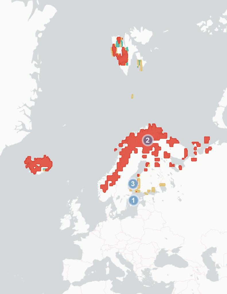 Forlong-tailedjaegerweincludedthefollowingterrestrialvariables:mean temperatureofthewarmestmonth,precipitationduringbreedingseason,distance tosea.
