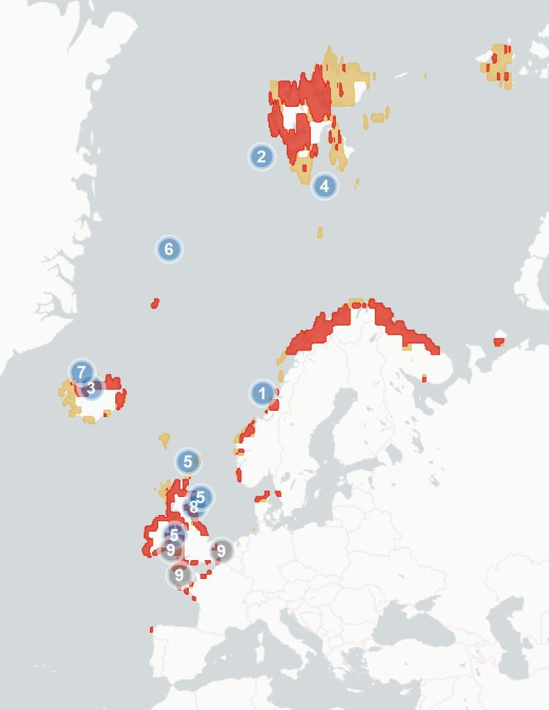 ThisdocumentsynthesisesavailableinformationforseabirdsintheNorth-East Atlantic.TheNorth-EastAtlanticcoverstheOSPARregionofEurope,fromthe BarentsseaandSvalbardintheNorth,tothecoastofPortugalintheSouth.Wealso includedspeciesandpopulationsbreedinginandaroundtheBalticsea;this adjustmentwasmadeinresponsetoknowndistributionsofsignificantfishstocks,as wellasinformationonareasknown tobeimportantbreedingand/or winteringgroundsforspecies otherwisecommoninWestern Europe.Wedidnotassessspecies orpopulationsinthe Mediterranean,aroundGreenland, aroundtheAzoresoraroundthe Canaries.