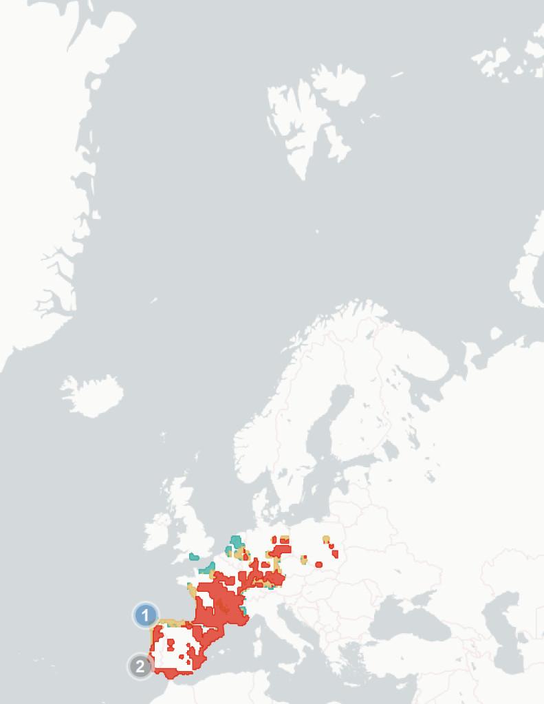 Afterrunningourmodelwegeneratedapresent-daymapwhereeverygrid-cellis givenahabitatsuitabilityscorebetween0and1,where1isverysuitablehabitat and0isnotatallsuitable.Wethencomparedthiswithacorrespondingmapbuilt with2100data,andhighlightedcurrentlyinhabitedareaswhere1)suitabilitydrops