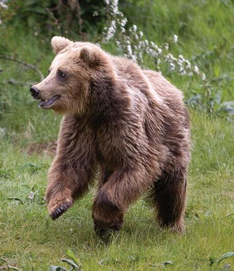 Three-year-old sisters Mana and Minnie, and twoyear-old Naya, arrived at Whipsnade Zoo from Orsa Predator Park in Sweden earlier this spring, joining Whipsnade’s brown bear Cinderella. All three bears hibernated through Sweden’s cold winter, but now that they’ve arrived they’re a bundle of energy, says zookeeper Sarah McGregor. “It's wonderful to have the new arrivals here and to see the young bears enjoy all our enrichment, splashing in the pool and climbing high in the trees,” says Sarah. “The three new bears have made themselves at home here at Whipsnade and they all have such an inquisitive and playful nature. All three bears are spending time every day with our resident bear Cinderella, out in the paddock, so they can all get to know each other.”