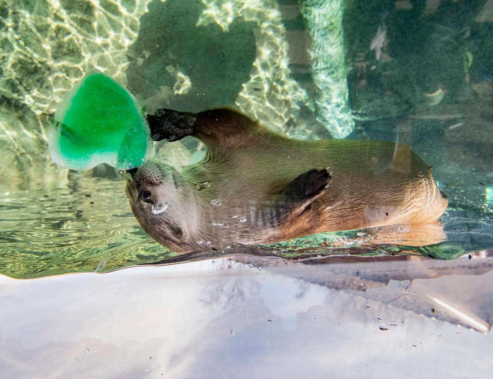 Two of the Zoo’s North American river otters, Shamrock and Clover, were born on St. Patrick’s Day! To celebrate, zookeepers sometimes give them