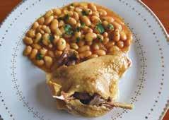鴨のもも肉も熱々、そして白インゲンも熱々 になっている。鴨のもも肉はこわれやすいの で慎重にとり出し、それぞれの皿に。白イン ゲンを添え、みじんに切ったパセリを散らす。 コンフィならではの柔らかなもも肉のうまさは 抜群だ。友人たちを招いたときに出しても、 ちっともはずかしくない一品だ。(真)