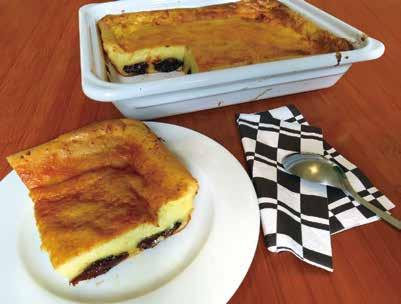 横22cm縦28cm高さ7cmくらいの型にファールのタネを流し 入れ、プリュノーを均等になるように散らし、熱くなっているオー ブンに入れる。10分たったら170度に温度を下げ、1時間前後焼 いていくことにしよう。写真のようにしっかりと焼き色がついたら オーブンから出す。熱々よりは少し冷めたくらいがおいしい。干 しブドウ入りのファールもつくり方はまったく同じです。このファー ル、デザートでもいいのだけれど、紅茶といっしょにおやつとい うのがベストだと思う。(真)