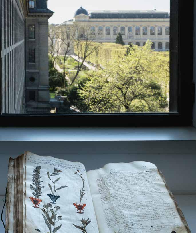 400周年の特別展はどのようなものですか? 「秋に始まる400周年の展覧会のテーマは〈自然史 博物館のアーティストたち〉。図書館の所蔵品を通して、 自然科学の世界では、観察し描くという行為自体が自 然史の〈知〉を築いてきたことに光をあてる展覧会です。 MNHNには自然科学を専門とする画家も常駐してきま したが、フランス革命後、研究者のためのデッサン講 座が設けられました。最も有名なのがピエール=ジョゼ フ・ルドゥテです。植物画家として広く活躍する一方、 MNHNで絵を教えました。科学画家のほかにもドラク ロア、ドゥアニエ・ルソー、動物の彫刻で有名なフランソ ワ・ポンポンらもインスピレーションを得るため、 MNHNに通いました。そういった作品も展示します」。 MNHN図書館の今日の役割は? 「400年前から、研究者や学生に資料を提供しつつ、 彼らの研究成果を発表するという双方向の働きをして います。そうした研究成果の蓄積で図書館は豊かに なってきました。今も収集、研究、知識の普及の役割 を担っていますが、17世紀と異なるのは収集の緊急性。 多くの種が絶滅の危機に瀕し、時間との競争になって いるからです。そういった背景から今日では、気候や 生物多様性に関して状況を評価、分析し、政府や国際 機関などへの提言も行うようになりました」。