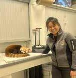 ◀︎ イザベルさんは、 自然史博物館の剥 製作家4人のうちの ひとり。動物園で息 を引き取った動物に あらたな命を与える かのような作業。 作ったばかりのレッ サーパンダの剥製と。