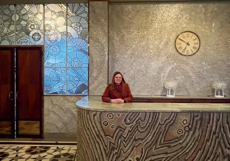 Buffet de la Gare de Saint Quentin サン・カンタンの駅は、戦火は免れたものの1922年、火災にあい フランス北部鉄道会社の出資で再建された。ギュスタヴ・ウンデ ンストックとユルバン・カッサンの設計で、駅舎にはホテル、郵 便局、ホームから回転扉でアクセスできるビュッフェ、バーも併 設。この食堂は必見だ(左)。パリ16区のレストランLe Prunier のモザイクや、7区のホテル・リュテシアのステンドグラスなどを制 作したオーギュスト・ラブレによる落ち着いた贅沢感のある内装 がすばらしい。ラブレは地元エーヌ県出身だが、パリの百貨店、 下述の豪華客船ノルマンディーなど、多くの内装に携わった。