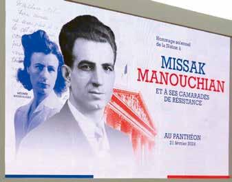 2月21日、ミサック・マヌシアン(1906-44) とその妻メリネ(1913-89)が偉人廟パンテ オンに祀られた。ミサックは第二次世界大戦 中、ドイツ占領下のフランスで、外国人であ りながら対独レジスタンスに参加し、80年前 の2月21日にパリ近郊モンヴァレリアンで独 軍により処刑された。パンテオンの墓標には、 彼とともにレジスタンスに参加したメンバーの 名前も刻まれた。彼らはファシズムや民族迫 害などを逃れてフランスにやって来たハンガ リー、ポーランド、スペイン、イタリア、アル メニアなどの出身。スペイン内戦では義勇兵