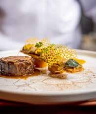 いっぽう、ファーストおよびビジネスクラスのアラカルト洋 食 メニューは、 パリのミシュラン つ星フランス料理店 「PAGES パージュ」の手島竜司シェフが監修。そこに新し いメニューが登場。オレンジとフヌイユ(ういきょう)の風味