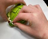 Carefully slice a few lines into the back of the avocado running up and down, side to side. 4
