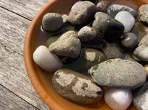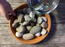 Add the pebbles and rocks to the bath so that the bottom is completely covered.