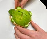Put those pieces under the four corners of the avocado to make the tortoise’s front and back feet. 7