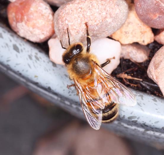 Fill the bath with water. Reposition rocks at different heights so that bees have a place to land.