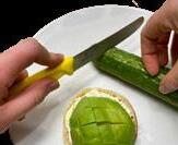 Cut a round slice of cucumber off, then cut that slice into four equal pieces. 6