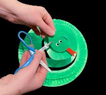 Once the paint is totally dry, cut a spiral from the outside to the centre of the paper plate.