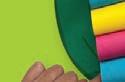 Take one of the coloured rectangles and fold it over to make a cylinder shape. Glue the ends together. Repeat with all of the rectangles.