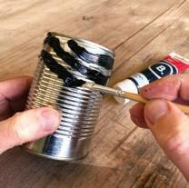 Decorate the cans using the paint and paint brushes. You could paint it to look like your favourite animal (zebra stripes, spots for a giraffe or vibrant colours like a parrot).