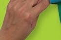 Cut a long strip of green craft paper (about 30cm). Glue one end of the strip to the bottom of the face end of the caterpillar and glue the other end of the caterpillar halfway down the green strip.