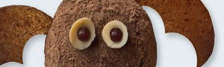 Chop up some almonds to make the eyes, roll a small bit of the leftover mixture into tiny pupils, add two almond slivers for fangs and enjoy.