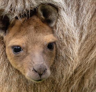 You’re a cuddly kangaroo joey. Joeys spend most of the first 10 months of their life in their mother’s cosy pouch. They drink milk from their mum and only begin to venture outside her pouch at four months old –although they don’t go very far.