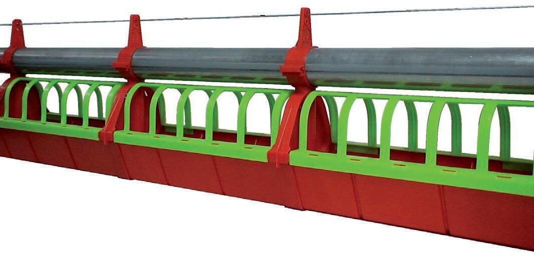 The obstacle-free linear trough feeder allows an easy access for the animals which can easily spot the feed.