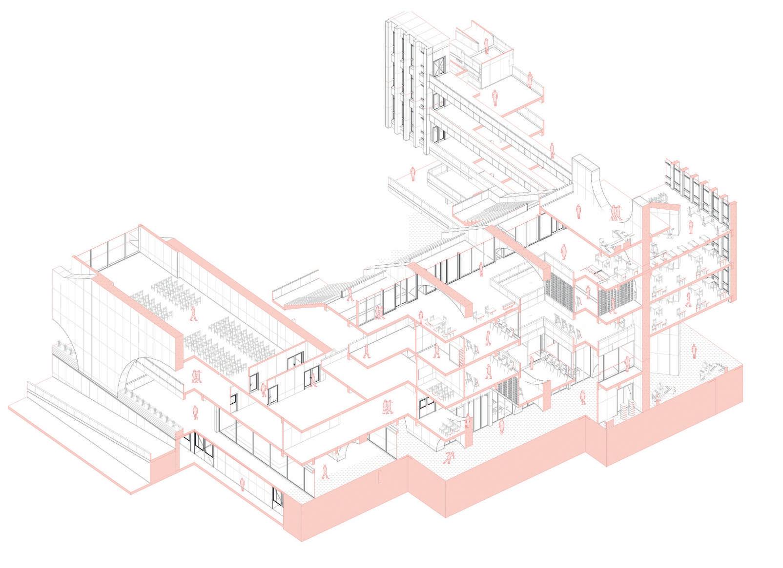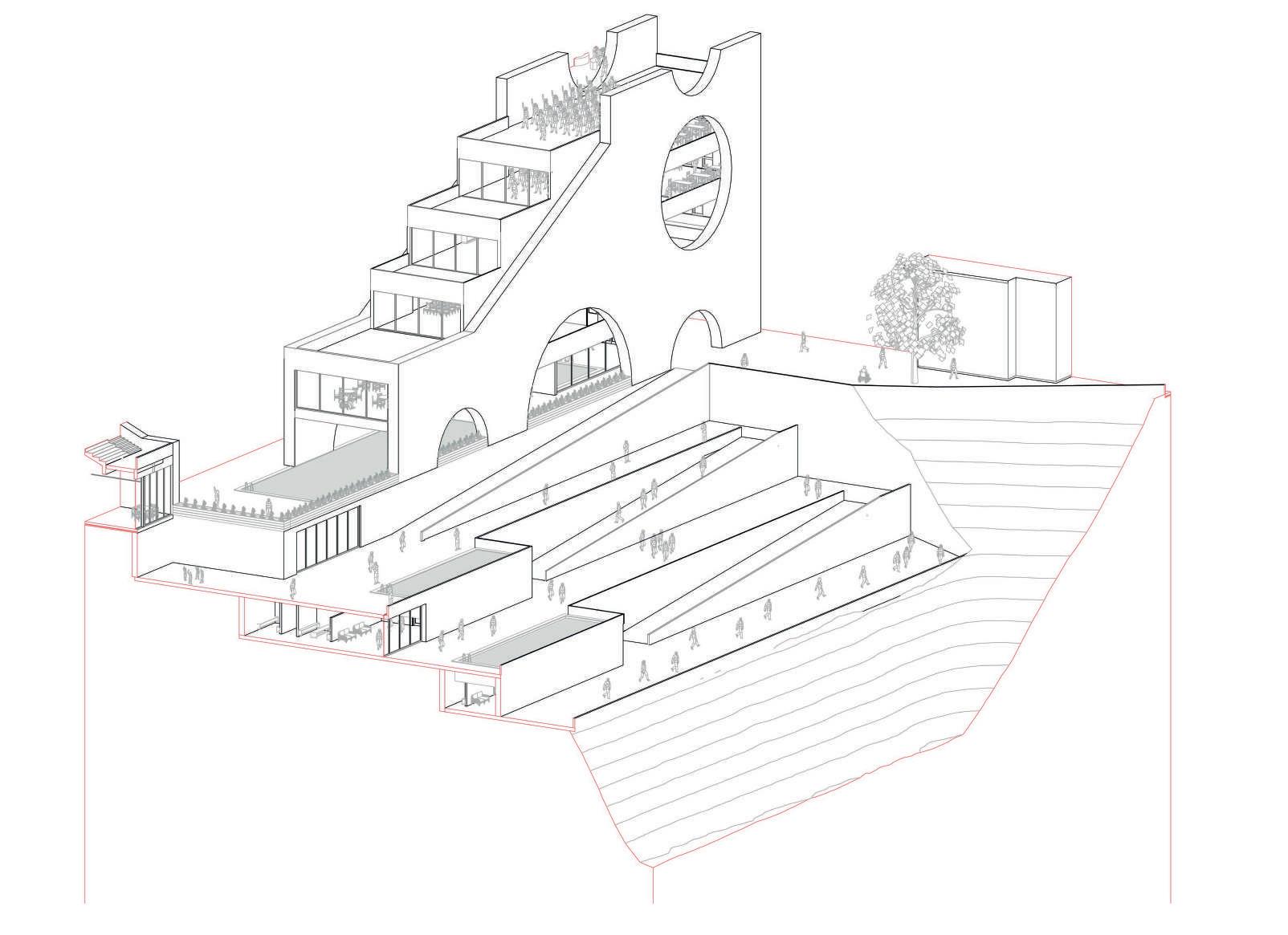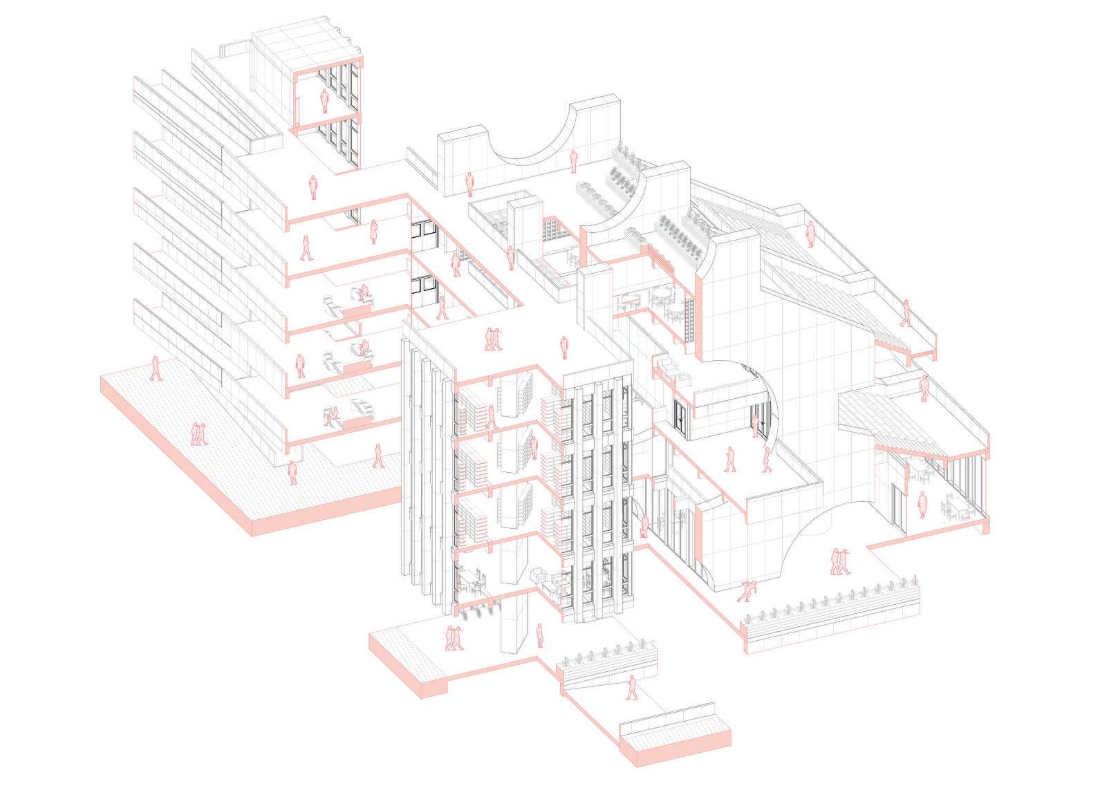 DESCRIPTION: The design of a Civic Center is contemplated by the OSCE as a set of buildings for the satisfaction of certain services of the population, in addition the conception of this infrastructure in the country is directed strictly towards the differentiation of its programs by floors having as strict connectors only the corridors, stairs and waiting spaces, relegating the interaction and recreation of the users only to the public space that surrounds it through the green areas. Faced with this question, how could a building aspire to its multifunctionality without losing its “civic” character and functioning as a gear between the city and its territory?