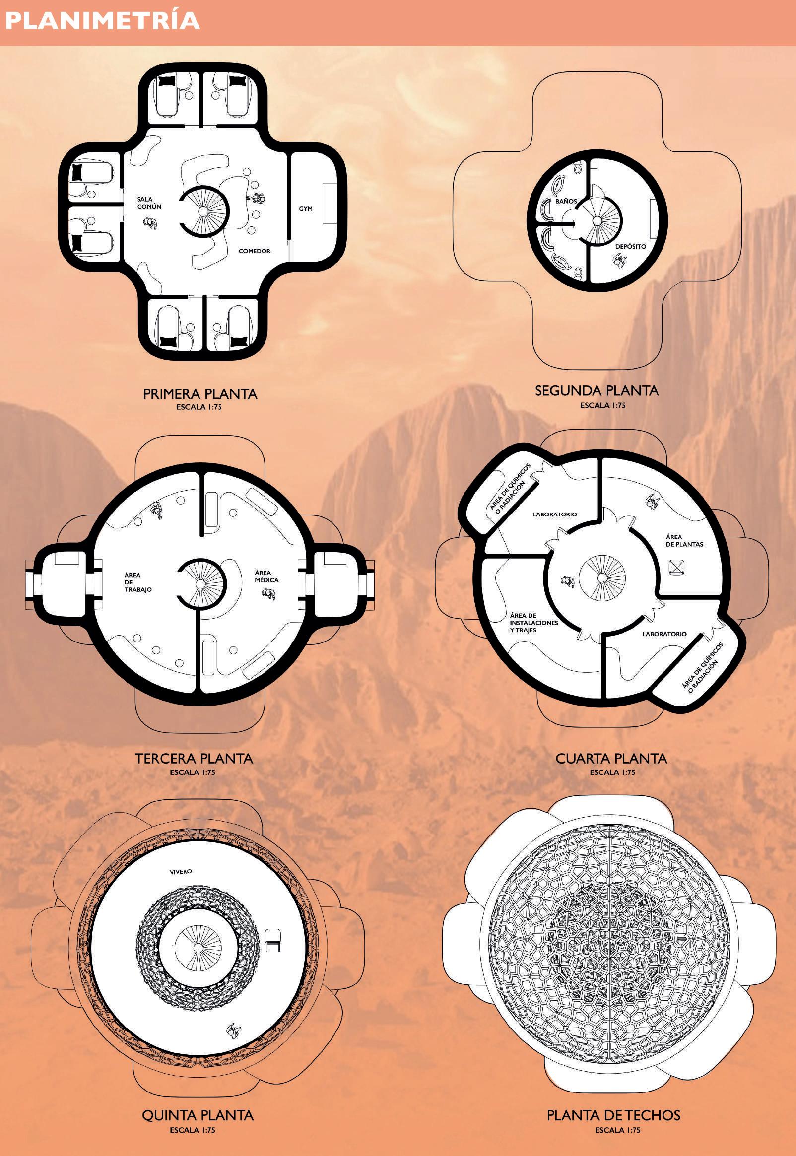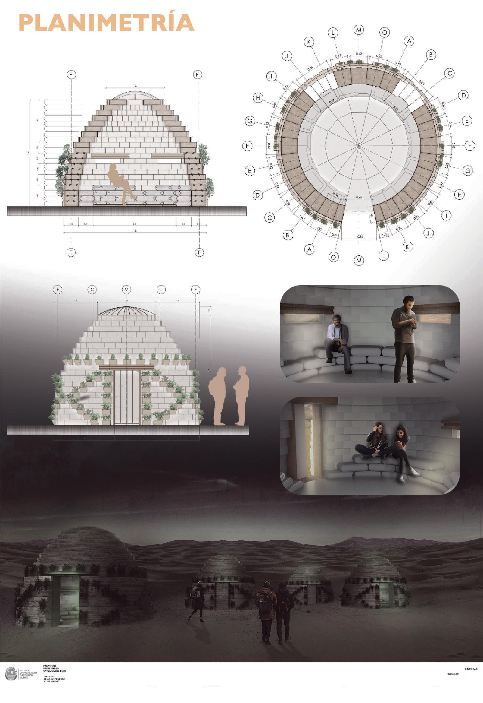 DESCRIPTION: Fungus is a project based on Stephen Hawking’s premise “life in the future will be interplanetary”. Based on this and from a deep investigation, it is proposed how architecture could join other scientific disciplines to make this challenge possible, designing a refuge habitat built with the same rocks of the planet Mars and that meets the necessary requirements for survival. such as: radiation protection, sand storms, heat conservation and no angles by atmospheric pressure.