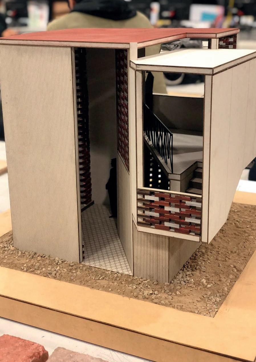 DESCRIPTION: Kawsaykuq is a name derived from the word “fabric” since it proposes a masonry thread as the basis for the design in which the bricks are of different colors and allow the entry of light with an interesting pattern. In the same way, reinforced concrete is used with a related finish that manages to integrate. This viewpoint offers a unique spatiality from the double-height diagonal entrance, continuing through the half-level floor until reaching the balcony.